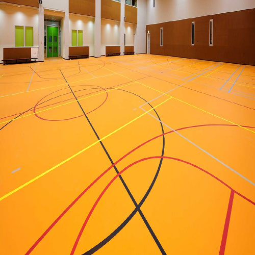 :- The construction of this type of sports surface involves mixing rubberised granules with a specifically formulated polyurethane binder on site and laying in site by the method of hand lay or machine lay. Once the flooring has fully cured anti-slip, non-skid polyurethane paint is applied to the flooring to give the flooring colour and skid resistance. This specification is very popular for schools and clubs who are looking to complete a court upgrade by installing a surface with better playing qualities for different sports.